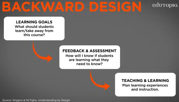 It’s important to have the learning objectives set before introducing the technological tool. Learning should always be the number one priority, and technology should enhance and transform the learning process. If we were to pick technology first, then we might get so carried away with all the cool tools available to us that we lose sight of the learning goals. The backward design, then choosing technology, helps us to stay on track! (Mod 4: Backward Approach to Design)